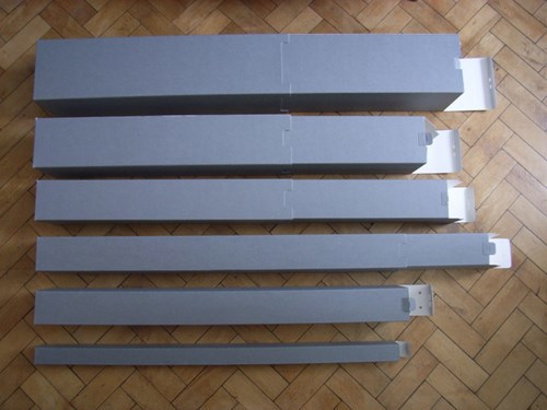 For larger maps or plans that can be stored rolled, you can get long individual boxes as shown here. Some are telescopic so can be extended to the right size, although we would recommend securing them at the chosen length so they don’t get pushed back, squashing the contents! An archival gummed tape – paper, linen or cotton – is best for this. They should be stored horizontally so that your rolled plan is not standing on one end and becoming crushed.