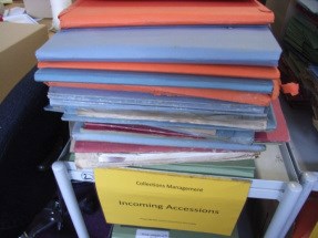 For archive collections an average temperature of 18 degrees centigrade is recommended over the course of a year, keeping it above 13 degrees (to avoid condensation problems), but no higher than 23 degrees, with humidity levels between 35 and 60%. A day or two outside of these ranges shouldn’t be a problem, but continuing high levels of heat and/or humidity will cause things to stew in their own juices! Think of an oven left on low, gently slow-cooking your stuff! Chemical reactions happen faster, so decay rates for organic materials (what all of our archives are made of) speed up, and we want to avoid that if possible!