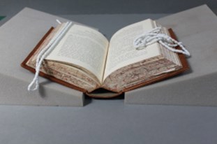 - If displaying books, it’s best to have them well supported at a low angle not more than 30 degrees from the flat. Supports will only really do their job properly if made to fit the profile of the book when open at the page on display (if you have a rare or valuable book it might be worth asking a conservator to make one for you). Pages can be held in place if necessary using strips of polyethylene. You can secure the ends of the strip together carefully with a small piece of double –sided tape, but don’t let it stick to the item!