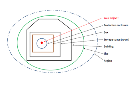 Think of your document, object or collection as sitting inside several outer layers: the "six levels of enclosure". These can provide protection, or they could be sources of harm. We need to think about each of these layers when preserving our collections. Each collection is unique and is kept in a particular location and environment. It will be different for everyone.