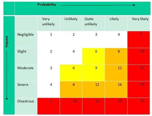 For each of the tasks (or subtasks), think about the possible impact of the 10 agents of deterioration: how severe the damage might be, and how likely it is to happen. Think about what you already have in place to reduce that risk – remember we have to Avoid, Block, Detect, Respond, Treat, starting with Avoid and Block wherever possible! Where the Probability column and the Impact column meet you will find the priority number to assign to your task. The highest score takes top priority – if anything has a score of 25 tackle it as soon as possible!
