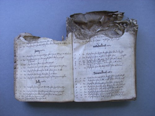 Pests also come rodent sized! Something had a good meal out of this parchment manuscript long before the archives took it in (the manuscript, not the rodent!)